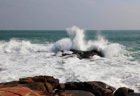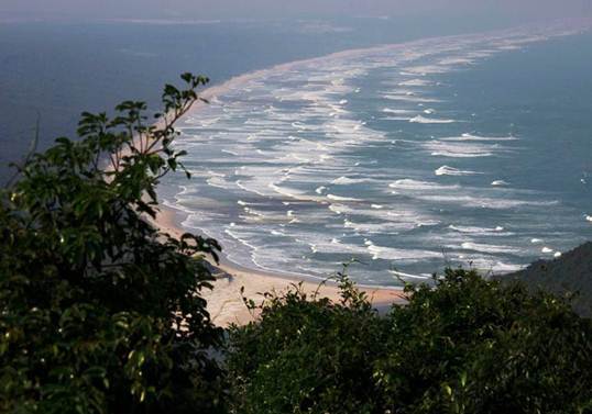 站在峰上远眺峰下的“月亮湾”,海滨沙滩宽阔,海浪重叠千层,波峰泛银,景色奇特。